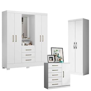 Guarda Roupa Solteiro Paris 2045150 com Armário Multiuso 2 Portas New 2000192 e Cômoda Sapateira Milão 2014145 Branco - Aramóveis