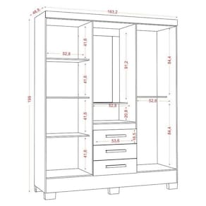 Guarda Roupa Solteiro Paris 2045150 com Armário Multiuso 2000191 e Cômoda 2014148 Atacama - Aramóveis