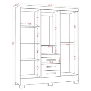 Guarda Roupa Solteiro Paris 2045150 com Armário Multiuso 2000192 e Cômoda 2014148 Atacama - Aramóveis