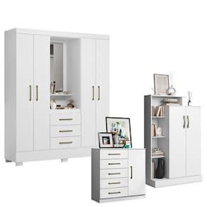 Guarda Roupa Solteiro Paris 2045150 com Armário Multiuso Florença 2000199 e Cômoda Sapateira Milão 2014145 Branco - Aramóveis