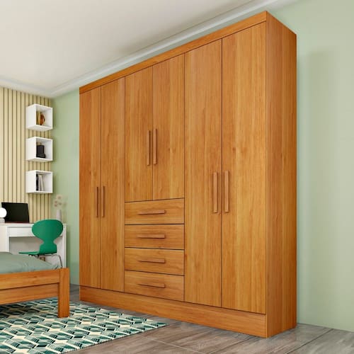 O(a) Guarda-Roupa Solteiro Pellgrino 6 Portas Cinamomo - Pnr Móveis é produzido em MDP na escala de brilho Brilho e Fosco, e possui um grau de dificuldade de montagem: Médio.