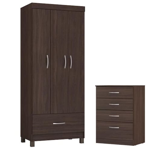 Guarda Roupa Solteiro Prince com Comôda Astral Café - Demóbile