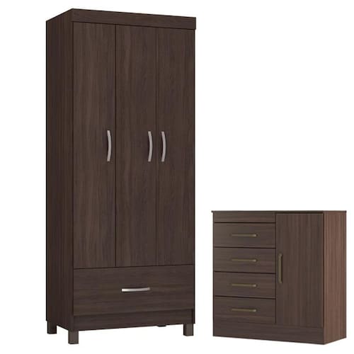Guarda Roupa Solteiro Prince com Cômoda Montevidéu Café Touch - Demóbile