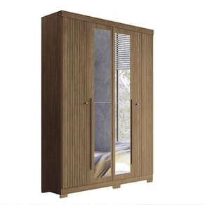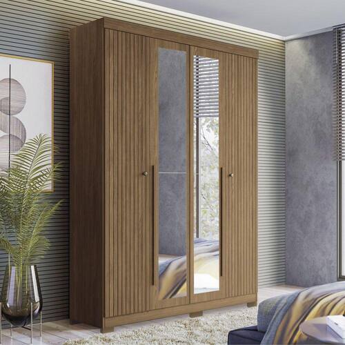 Guarda Roupa Solteiro Ripado 4 Portas 2 Gavetas com Espelhos e Pés Antony Jatoba - Marrom