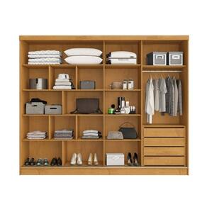 Particularidades do guarda-roupa: Características: - Ripado em MDF; - 100% MDF, chapas de 15mm; - Coluna lateral de 25mm; - Espelho lateral; - Gavetas com corrediças telescópicas; - Cabideiros em alumínio; - Modulado para roupas longas; - Dobradiças modernas e reforçadas;