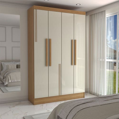 O(a) Guarda-Roupa Solteiro Risk 4 Portas 3 Gavetas Cinamomo/Off White - Loja é produzido em MDP na escala de brilho Semi-Brilho, e possui um grau de dificuldade de montagem: Médio.