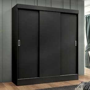 O(a) Guarda-Roupa Solteiro San Marino 3 Portas 2 Gavetas Preto - Maxel é produzido em MDP na escala de brilho Brilhante, e possui um grau de dificuldade de montagem: Médio.