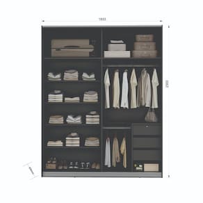 Roupeiro 100% MDF, modelo VENETO na cor PRETO com 2 portas deslizantes sem espelho. Este roupeiro com pintura fosca vai ficar perfeito em seu espaço e deixar seu ambiente moderno, cheio de conforto, beleza e qualidade. As portas com sistema deslizante FLUTUANTE proporcionam melhor eficiência e segurança, alem de ser um diferencial exclusivo dos produtos MAMBEL da linha VENETO. Acabamento da Prateleira: Pintura Escala de Brilho da Prateleira: Fosco Possui Cabideiros: 01 Acabamento da Gaveta: Pintura Escala de Brilho da Gaveta: Fosco Material do Puxador da Gaveta: MDF Possui Organizador de Gaveta: Não Acabamento da Porta: Pintura Escala de Brilho da Porta: Fosco Material do Puxador da Porta: Alumínio Altura do Espelho: cm Ambiente Principal: Quarto Complexidade da Montagem: Alta: deve ser montado por um montador especializado Cor: Preto Cor do Produto: Preto Cor Interna: Preto Escala de Brilho: Fosco Espessura do Espelho: mm Formato do Espelho: Retangular Gaveta com Chave: Sim Itens Inclusos: 1 Guarda Roupa, Kit Ferragens e Manual de Montagem. Largura do Espelho: cm Linha ou Coleção: Veneto Manual de Montagem e Instalação: https://cdn2.madeiramadeira.com.br/atributo/mambel/1147931-manual-de-montagem-estrutura-veneto-2-pts.pdf Material da Gaveta: MDF Material da Porta: MDF Material da Prateleira: MDF Material Principal: MDF Necessita Montagem: Sim Origem do Produto: Nacional Peso: 187.69 Peso Máximo por Gaveta: 5 Peso Máximo por Prateleira: 10 Possui Calceiros: 01 Possui Espaço para Vestidos Longos: Sim Possui Espelho: Não Possui Espelho Interno: Sim Possui Ganchos: Não Possui iluminação: Não Possui Painel de TV: Não Possui Pés: Não Possui Portas: 02 Possui Prateleiras: 06 Possui Sapateira: Não Recomendações de Uso, Manutenção e Limpeza: Pano limpo e úmido. Sistema de Montagem: Minifix Tipo de Corrediça da Gaveta: Metálica Telescópica Tipo de Dobradiça/Corrediça da Porta: Metálica Tipo de Fixação do Espelho: Molduras Tipo de Gaveta: Interna Tipo de Guarda-Roupa: Solteiro Tipo de Puxador da Gaveta: Embutido Tipo de Puxador da Porta: Externo