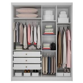 Guarda Roupa Solteiro Sevilha 4 Portas 3 Gavetas Neve com Espelho – Novo Horizonte