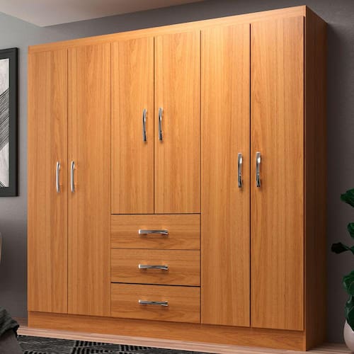 Guarda-roupa Solteiro Sevilha 6 Portas 3 Gavetas Cinnamomo - Evidencia Móveis - Marrom
