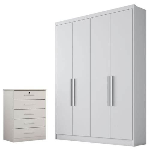 Guarda Roupa Solteiro Sevilha 4 Portas 3 Gavetas Neve – Novo Horizonte
