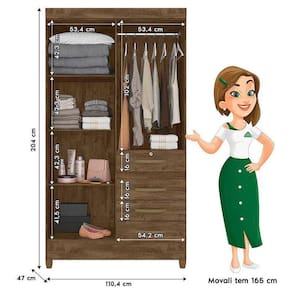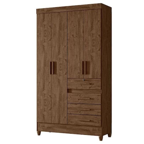 Guarda Roupa Solteiro Sobral 4 Portas Castanho Wood - Moval