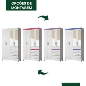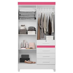 Tipo de Guarda Roupa: Solteiro | Tonalidade: Multicolorido | Quantidade de Portas: 4 | Fabricante: Moval Cor: Branco/Rosa