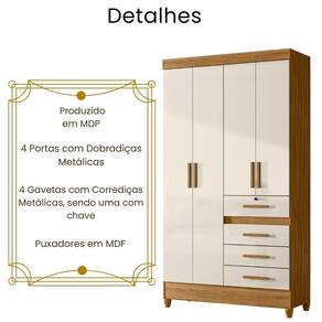Guarda Roupa Solteiro Sobral 4 Portas Moval