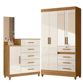 Guarda Roupa Solteiro Sobral com Espelho e Cômoda Lisboa Freijó Off White Moval