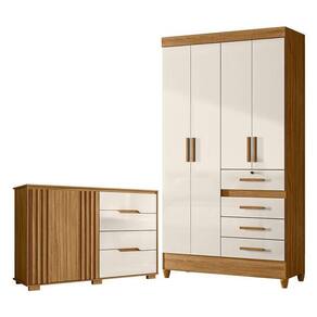 Guarda Roupa Solteiro Sobral e cômoda Texas Freijó off White Moval