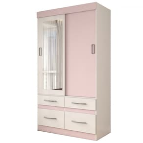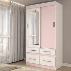 O(a) Guarda-Roupa Solteiro Trento 2 Portas 4 Gavetas com Espelho Flex Branco/Rosa - Loja é produzido em MDP na escala de brilho Brilho e Fosco, e possui um grau de dificuldade de montagem: Médio.