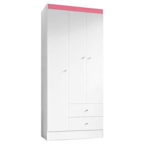 Guarda Roupa Solteiro Versa 3 Portas Branco Rosa Flex Fosco - Kits Paraná