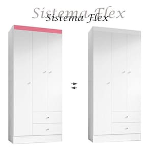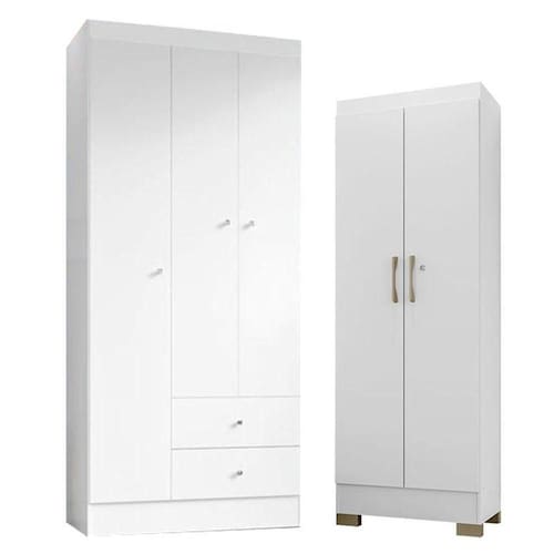 Guarda Roupa Solteiro Versa 3 Portas Branco Rosa Fosco com Armário Multiuso Luna Branco Fosco - Kits Paraná