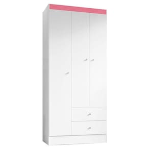 Guarda Roupa Solteiro Versa 3 Portas Branco Rosa Fosco - Kits Paraná