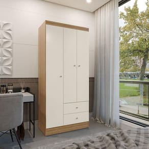 Guarda Roupa Solteiro Versa 3 Portas Freijó Off White Fosco - Kits Paraná