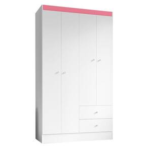 Guarda Roupa Solteiro Versa 4 Portas Branco Rosa Flex Fosco - Kits Paraná