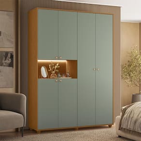 O Guarda-Roupa Solteiro Vittoria une design moderno e praticidade. Produzido em MDP com pintura UV, possui seis portas com dobradiças slow motion, duas gavetas com corrediças telescópicas, prateleiras internas, cabideiro em alumínio e nicho central com iluminação em LED, oferecendo ótimo aproveitamento do espaço e funcionalidade no dia a dia.