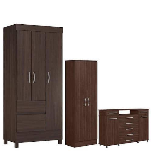 Guarda Roupa Solteiro Wind com Multiuso Golden com Cômoda London Café - Demóbile
