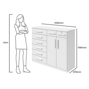 - Possui 08 gavetas com corrediças telescópicas