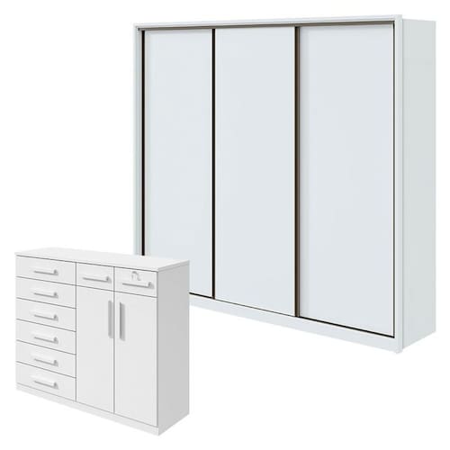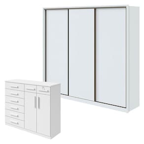 Guarda Roupa Spazio 270 e Cômoda Toronto Branco Brilho - Lopas