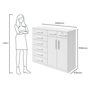 - Possui 08 gavetas com corrediças telescópicas