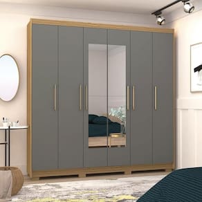 O Guarda Roupa feito em MDP dispõe de seis gavetas, seis portas, cabideiros com duas opções de montagem e possui espaço para guardar os sapatos.
