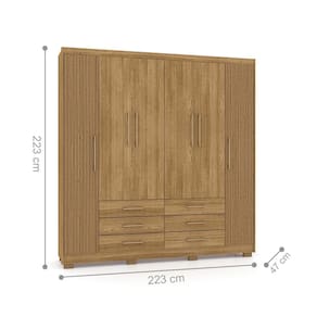 O Guarda Roupa feito em MDP dispõe de seis gavetas, seis portas, cabideiros com duas opções de montagem e possui espaço para guardar os sapatos.