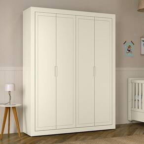 ESPECIFICAÇÕES: Estrutura 100% MDF Pintura UV 4 Portas com puxadores usinados 4 Gavetas internas Corrediças telescópicas Cabideiros em alumínio Dobradiças metálicas Portas com detalhes em baixo relevo Amplo espaço interno