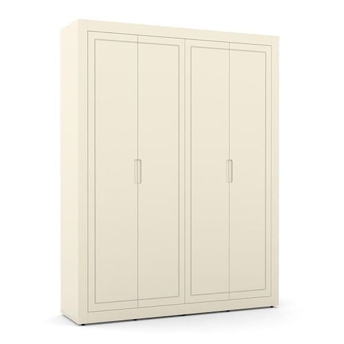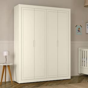 ESPECIFICAÇÕES: Estrutura 100% MDF Pintura UV 4 Portas com puxadores usinados 4 Gavetas internas Corrediças telescópicas Cabideiros em alumínio Dobradiças metálicas Portas com detalhes em baixo relevo Amplo espaço interno