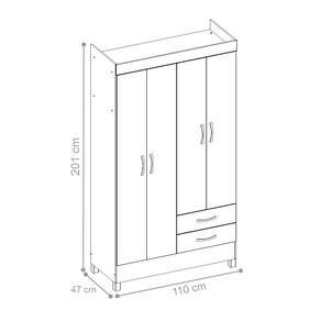 Feito em MDP, além de possuir 4 portas,2 gavetas e 4 prateleiras internas.