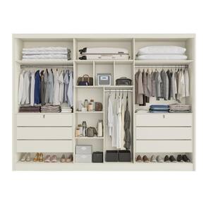 Equipado com6gavetas sendo 2 delas com chave para maior segurança, gavetas com corrediças telescópicas para um deslizar suave, e cabideiros e calceiros em alumínio para durabilidade e modernidade.