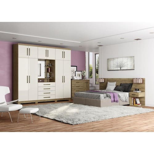 Agregue valor ao seu quarto com o Roupeiro Viena 10 portas, produzido em MDP e acabamento em pintura UV, seu interno é com pintura no padrão Trama, que imita tecido.