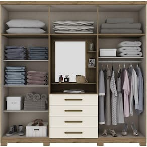 Sua excelente divisão interna proporciona melhor organização das roupas, possui 4 gavetas externas para organização de peças menores, com corrediças metálicas que permite um deslize mais seguro e suave.