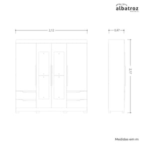 Características do Produto: Marca: Albatroz Modelo: Vivacce Material do Produto: MDP Material da Porta: MDP Tipo de Pintura: Pintura UV Acabamento da Pintura: Fosco Material do Puxador: MDF Revestidos Tipo de Cabideiro: Alumínio Tipo de Gaveta: Externa Tipo de Corrediça: Telescópica Tipo de Porta: Bater Tipo de Dobradiça: Metálica Material dos Pés: ABS Possui Gavetas: Sim Q. de Gavetas: 4 Possui Portas: Sim Q. de Portas: 4 Possui Prateleiras: Sim Q. de Prateleiras: 6 Possui Pés: Sim Q. de Pés: 8 Peso Suportado Pelas Gavetas (kg): 5 Necessita Montagem: Sim Complexidade de Montagem: Alta Complexidade. Recomendasse a Contratação de Montador Profissional. Manutenção e Limpeza: Limpar Com Flanela ou Pano Macio Seco, Não Utilizar Produtos Abrasivos, Desengordurantes, Álcool ou Solvente. Não Expor o Produto Diretamente à Luz Solar e à Umidade.