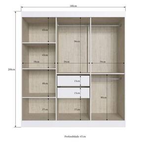 Guarda-Roupa 6 Portas 2 Gavetas Doripel XangaiO Guarda Roupa Xangai da Doripel foi fabricado em material de alta qualidade e sempre pensando na praticidade e conforto de sua família. Possui 6 portas e 2 gavetas internas com amplo espaço para separar suas roupas conforme seu gosto.Recomendação de limpeza: Para limpeza de seu móvel, use uma flanela seca ou umedecida. Não utilize produtos químicos que possam danificar o produto.Informações Importantes:- A compra do produto não acompanha montagem/desmontagem.- Os objetos que ambientam as imagens, não acompanham o produto.- Atenção: As cores das imagens podem sofrer alterações devido a luminosidade, configurações do monitor e até mesmo a percepção do usuário.Características do produto Modelo Xangai Cor Branco Material MDP Acabamento Pintura UV Escala de brilho Brilho Quantidade de portas 6 Quantidade de gavetas 2 Quantidade de prateleiras 4 Quantidade de cabideiros 2 Tipo de porta Bater Tipo de gaveta Internas Puxador ABS Dobradiças Metálicas Corrediças Metálicas Peso suportado por cabideiro 5 Kg Peso suportado por gaveta 5 Kg Peso suportado por prateleira 5 Kg Necessita montagem Sim Complexidade de montagem Média Sistema de montagem Parafusos e Cavilhas Quantidade de volumes 2 Manual de montagem Exibir manual Marca Doripel Conteúdo da embalagem 1 Guarda Roupa, Kit Ferragens, Manual Dimensões aproximadas do produto 200 x 180 x 47 cm (A x L x C) Dimensões aproximadas da embalagem 15 x 61 x 200 cm (A x L x C) Peso aproximado do produto 97 Kg Peso aproximado da embalagem 97,4 Kg do fornecedor 3 Meses Informações Adicionais Amplo espaço interno
