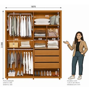 Estrutura 100% MDF 15cm e 25cm, portas com dobradiças metálicas com sistema de amortecimento, puxadores em MDF, gavetas com corrediças telescópicas, cabideiros em alumínio, cabideiros retrateis com pistão a gás, portas espelhadas e pés em poliestireno, Fixação com minifix e parafusos. Acabamento da Prateleira: Pintura UV Escala de Brilho da Prateleira: Semi-Brilho Possui Cabideiros: Sim Acabamento da Gaveta: Pintura Possui Organizador de Gaveta: Não Acabamento da Porta: Pintura UV Escala de Brilho da Porta: Semi-Brilho Altura dos Pés: 5 cm Altura Máxima dos Pés: 5.0000 Ambiente Principal: Quarto codigo_ean: 7900288237958 Complexidade da Montagem: Média: pode ser montado por mais de uma pessoa e/ou necessite de maior conhecimento para montagem Cor: Cumaru Cor do Produto: Cumaru Escala de Brilho: Semi-Brilho Espessura da Estrutura (mm): 15 mm Espessura das Portas (mm): 15 mm Espessura das Prateleiras (mm): 15 mm Espessura do Fundo (mm): 5 mm Espessura do Fundo das Gavetas (mm): 15 mm Itens Inclusos: 1 Guarda-Roupas e Kit Ferragem Linha ou Coleção: Domitorios Manual de Montagem e Instalação: https://product-hub-prd.madeiramadeira.com.br/706980314/documents/acfa74bc-8b19-4885-91aa-f0e059797368318775482617570921140204.pdf Marca: Madetec Material da Gaveta: MDF Material da Porta: MDF Material da Prateleira: MDF Material dos Pés: Plástico Material Principal: MDF modular: Não Necessita Montagem: Sim Origem do Produto: Nacional Peso: 155,9 kg Peso Máximo por Gaveta: 5 kg Peso Máximo por Prateleira: 5 kg Possui Calceiros: 01 Possui Espelho: Não Possui Pés: 06 Possui Portas: Sim Possui Prateleiras: Sim Produto Montado: Sim Quantidade de Cabideiros: 02 Cabideiros Quantidade de Prateleiras: 03 Prateleiras Recomendações de Uso, Manutenção e Limpeza: "Para a limpeza utilizar um pano limpo e seco. Não limpar com produtos abrasivos ou escovas; Não deixar exposta à luz do sol diretamente pois isso irá diminuir a vida útil do produto; Este produto Não é recomendado Para ambientes externos onde possa receber chuva." Sistema de Montagem: Girofix Tipo de Corrediça da Gaveta: Metálica Telescópica Tipo de Dobradiça/Corrediça da Porta: Metálica Tipo de Gaveta: Interna Tipo de Guarda-Roupa: Solteiro Tipo de Puxador da Gaveta: Não Possui Tipo de Puxador da Porta: Externo