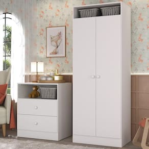 O Guarda Roupas 2 Portas com Cômoda 2 Gavetas Pimpolho Multimóveis é produzido em MDP, que garante maior durabilidade e resistência, e possui acabamento acetinado (cerca de 20% de brilho). Com gavetas, cabideiro e prateleiras, esse kit é muito funcional para deixar o ambiente organizado. Compacto e versátil, é uma ótima opção para deixar o quarto completo e você pode utilizar em qualquer ambiente, já que o design é clean.