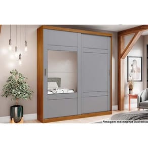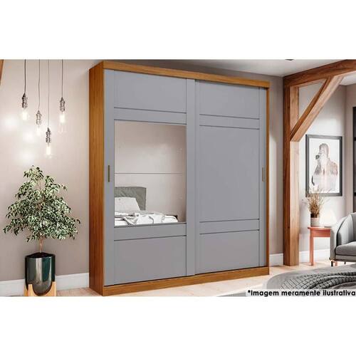 Guarda Roupa Casal 2 Portas de Correr (1 c/ Espelho) e 3 Gavetas Verg Nature/Cinza - Henn