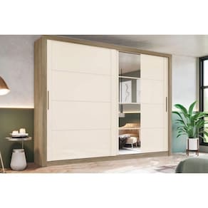 Guarda Roupas 2 Portas De Correr (1 C/ Espelho) E 4 Gavetas Palace Rústico/off White - Henn