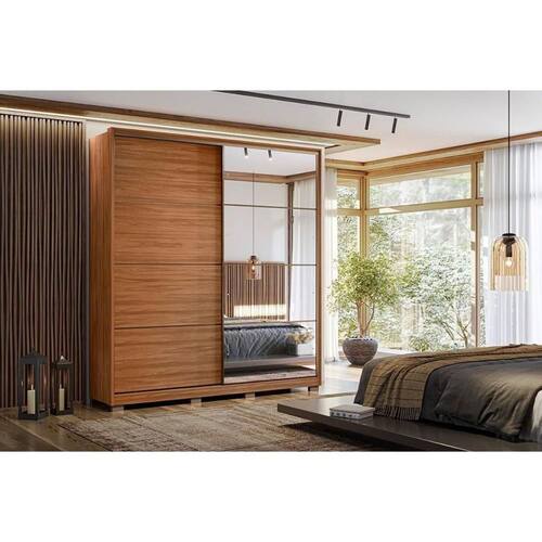 Guarda Roupas 2 Portas de Correr 3 Gavetas c/ Espelho e Pés Belga Flex Nogueira/Nogueira ou Preto - Demóbile - Blush