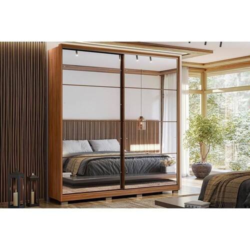 Guarda Roupas 2 Portas De Correr 3 Gavetas C/ Espelho E Pés Belga Nogueira - Demóbile