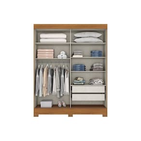 Guarda Roupas 2 Portas De Correr E 2 Gavetas C/ Pés Briz B353 Nature/cinza/off White - Henn