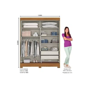 Dimensões(Cm): Comprimento(Profundidade): 159cm x Largura: 48cm x Altura: 200cm