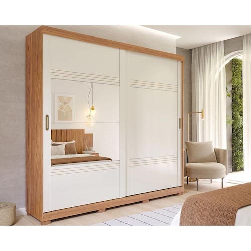Guarda Roupa Casal 2 Portas de Correr e 4 Gavetas c/ 1 Espelho e Pés Blumenau Cinamomo/Off White - Panan